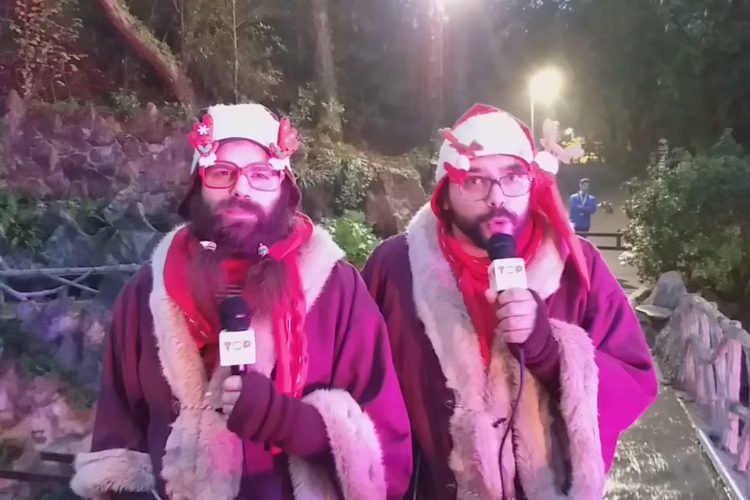 Pastilha e Pistão em plena Parada de Natal a entrevistar em primeira mão todos os personagens de Perlim, na sua TOP – Televisão Oficial de Perlim!